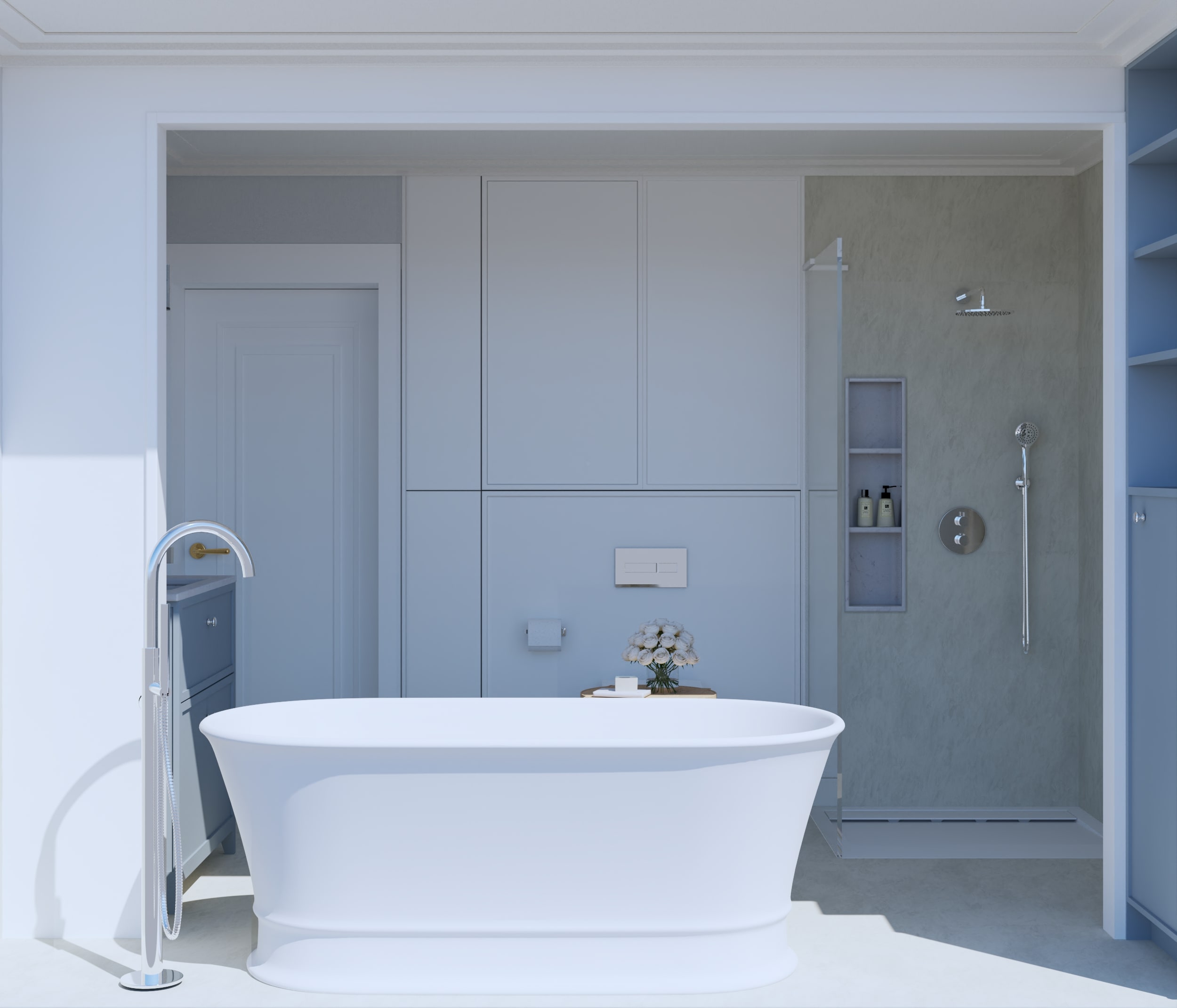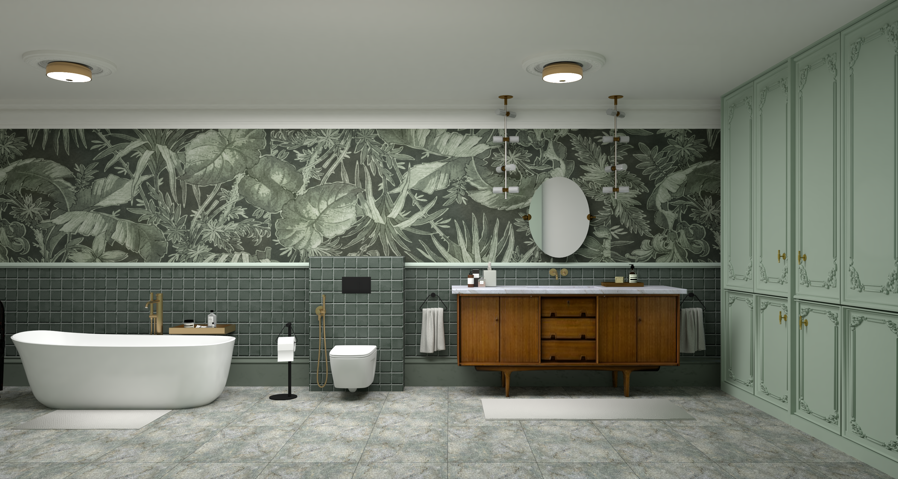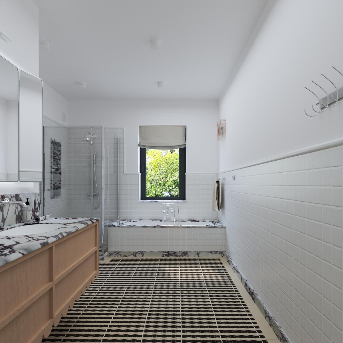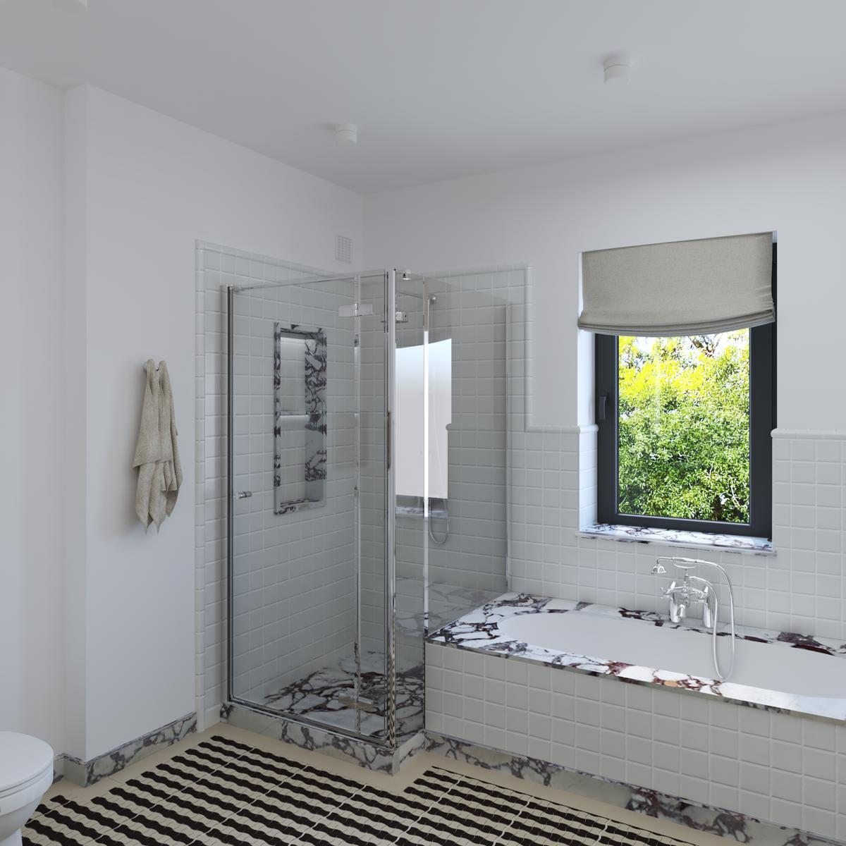 Koncepcja projektu jednej z realizacji czyli etap pracy nad pomieszczeniem na którym przedstawiam proponowane kolory, materiały i rozwiązania.